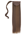 Długie, doczepiane pasma włosów wszyte na koronkowej półkolistej siateczce z jednym zatrzaskiem typu "klik". Aqua zakładana jest na kitkę, której doda gęstości i objętości, a estetyczna "owijka" zamaskuje wiązanie. Zastosowane kosmyków odpornych na ciepło do temperatury 130°C umożliwia stylizację, np. podkręcenie treski.