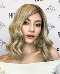Półperuka termoodporna, topper z większą bazą i długimi falowanymi włosami. Pasma umieszczono na bazie, gdzie tył to ukryte tresy (są delikatniejsze dla skóry), a górna część to mikroskóra pozwalająca na prześwity powierzchni głowy oraz linia rozmyta z przodu - ta zaciera granicę między twarzą a topperem i sprawia, że fryzurę można odgarnąć z czoła bez obaw o zauważenie uzupełnienia przez otoczenie.