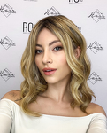 Półperuka termoodporna, topper z większą bazą i długimi falowanymi włosami. Pasma umieszczono na bazie, gdzie tył to ukryte tresy (są delikatniejsze dla skóry), a górna część to mikroskóra pozwalająca na prześwity powierzchni głowy oraz linia rozmyta z przodu - ta zaciera granicę między twarzą a topperem i sprawia, że fryzurę można odgarnąć z czoła bez obaw o zauważenie uzupełnienia przez otoczenie.