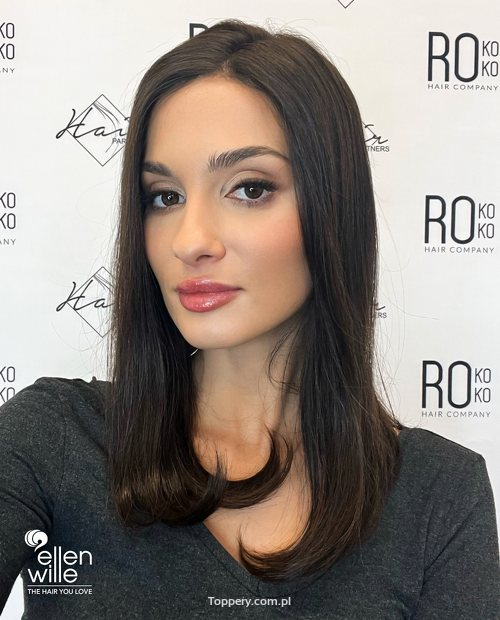 Superb jest uzupełnieniem opartym na monofilamentowej bazie z elementami poliuretanowymi i linią rozmytą. Mikroskóra na górnym obszarze to możliwość prześwitów powierzchni głowy, poliuretan zwiększa stabilność toppera (montaż następuje poprzez zapięcie spinek na własnych pasmach), przednia specjalna siateczka z przodu rozmywa przejście między krawędzią bazy oraz skórą twarzy. Można zaczesywać kosmyki z czoła do góry bez obaw o zauważenie założonego uzupełnienia przez otoczenie, a samo uczesanie jest w topperze stworzone z prawdziwych włosów remy, które sprzyjają bardzo naturalnej, efektownej całości. Fryzurę oczywiście można dopasować do upodobań poprzez odpowiednią stylizację na ciepło.
