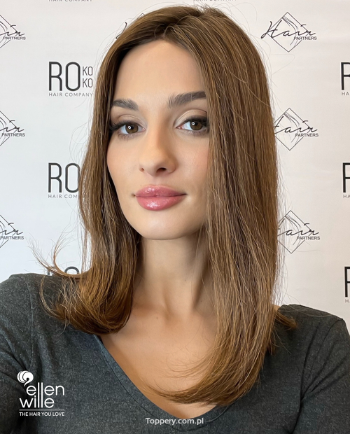 Kolor oferowanego toppera jest pokazany w kwadracie obok głównego zdjęcia. Modelka prezentuje kolor lightbernstein rooted.