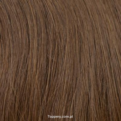 - Topper jest wykonany z najwyższej jakości niemodyfikowanych chemicznie włosów słowiańskich i fryzura zachowuje większość cech kosmyków rosnących na głowie. Włosy mają zachowane łuski ułożone w jednym kierunku (zgodnie ze wzrostem), które chronią przed wysuszeniem i uszkodzeniami. Są miękkie w dotyku i błyszczące. Pasma można bezpiecznie wymodelować z pomocą lokówki, suszarki czy prostownicy. Można je nawet pofarbować lub delikatnie rozjaśnić.