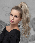 Dłuższa treska syntetyczna o włosach falowanych. Założona na "koński ogon" błyskawicznie sprawi, że kitka będzie wyglądać na dłuższą i dużo gęstszą. Cała fryzura od razu zacznie się lepiej prezentować. Włosy tej dopinki są termoodporne. To oznacza, że można je stylizować w razie potrzeby, a przy tym używać urządzeń o temperaturze do 130°C: suszarkę, lokówkę, prostownicę.