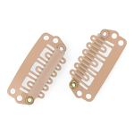 Symetryczny klips przeznaczony do mocowania topperów i dopinek do własnych włosów. Wyposażony w zaokrąglone listki zapinające typu „fala” oraz gumkę zabezpieczającą, która zwiększa komfort noszenia i zapewnia ciche, wygodne zapinanie. Wystarczy przyszyć do bazy toppera kilka sztuk.