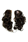 Wymodelowane włosy syntetyczne - treska kręcona złożona z dwóch części mocowanych do własnych włosów naturalnych za pomocą wygodnych klamerek. Szybkie rozwiązanie na co dzień i na wyjścia okolicznościowe. Zmiana fryzury nigdy nie była tak prosta! Założona treska błyskawicznie zagęści włosy i sprawi wrażenie gęstego, kręconego tyłu uczesania.
