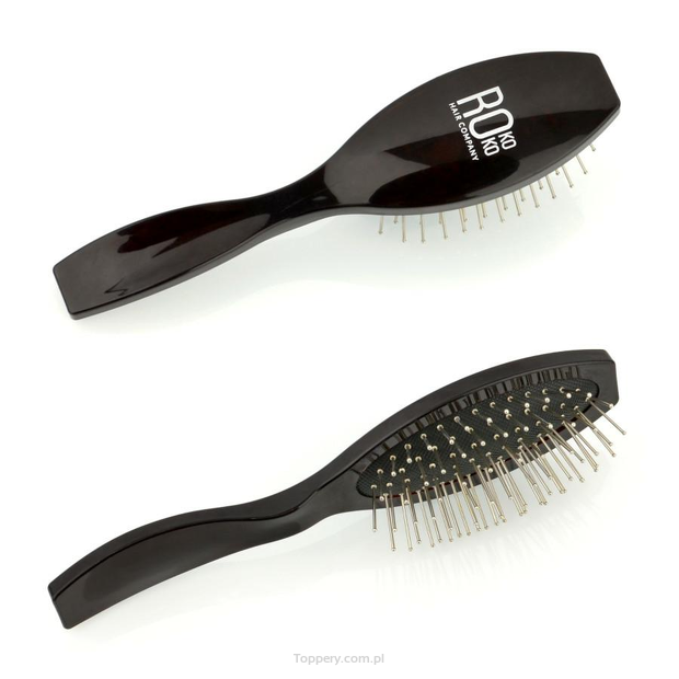 Mocne i trwałe tworzywo w estetycznym czarnym kolorze to pewność, że szczotka posłuży długo jako narzędzie do rozczesywania i podstawowego układania pasm toppera. Każda z igieł ułożonych niesymetrycznie jest zakończona maleńką kuleczką, tak aby czesanie włosów w topperze odbywało się skutecznie, a przy tym delikatnie, bez ryzyka wyrywania kosmyków lub uszkodzenia bazy.