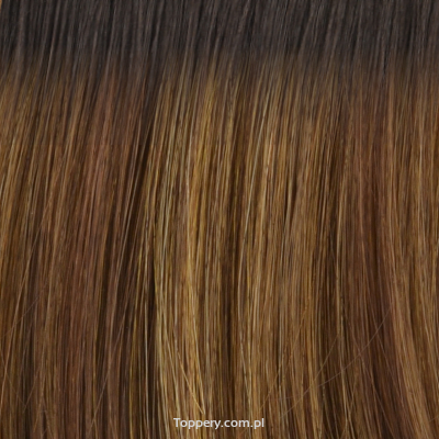 Maskowanie przerzedzeń w górnej części głowy to przeznaczenie toppera Toona. Fryzura średniej długości o prostych włosach mieszczonych na bazie zbudowanej głównie z monofilamentu zapewniającego prześwity prawdziwej skóry głowy. Z przodu bazy jest także linia rozmyta, dzięki której nie widać, gdzie kończy się czoło a zaczyna topper. Wszystko to dla jak najbardziej naturalnego efektu. Syntetyczne włosy odporne na ciepło do 130°C pozwalają na stylizację z użyciem wyższej temperatury, więc można nie tylko nosić topper jako gotowe uzupełnienie, ale także dopasować kosmyki do swojego uczesania, tak aby wtapiały się w nie jak najlepiej. Topper jest łatwy do założenia, wystarczy zapiąć na własnych włosach spinki wszyte od spodu.