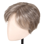 Dobrym uzupełnieniem krótkiej fryzury, tak aby stała się odpowiednio zagęszczona, a wszelkie przerzedzenia - skutecznie ukryte - będzie model Top Mono. Stworzony jest w wykorzystaniem włosów syntetycznych, które wyglądają niemal jak prawdziwe. Uczesanie ma jeden, gotowy do użycia kształt i nie wymaga żadnej dodatkowej stylizacji. Założenie jest błyskawiczne i łatwe dzięki spineczkom typu "klik". Spinki znajdują się od spodu, wszyte na brzegu, który wykonano na tresach. Okala on główną część bazy, czyli siateczkę z mikroskóry, a ta pozwala na prześwity powierzchni głowy, dlatego użytkowanie tego toppera zapewnia uzyskanie bardzo naturalnego efektu przy krótkiej fryzurze. Ponadto silikonowe elementy na spodzie bazy pomagają jeszcze lepiej trzymać uzupełnienie na miejscu przez cały dzień.