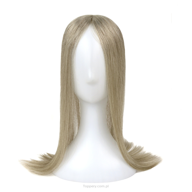 Zdjęcie z bazą toppera pokazuje włosy 48 centymetrów w kolorze lightgrey.
