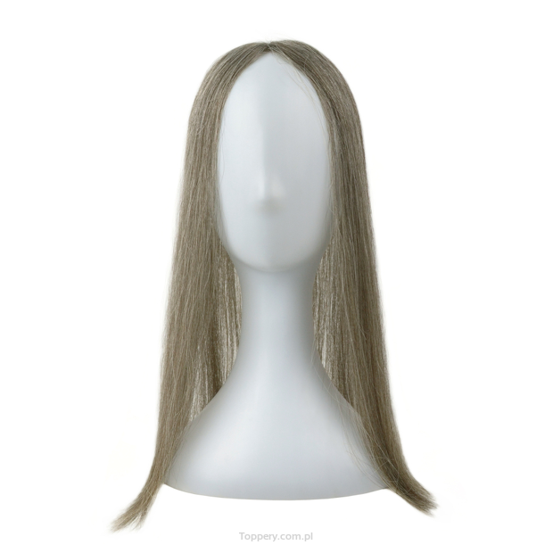 Zdjęcie z bazą toppera pokazuje włosy 48 centymetrów w kolorze lightgrey.