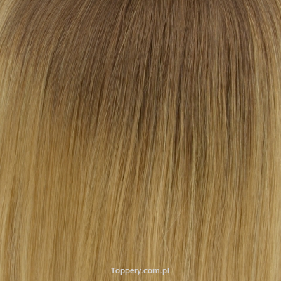 - W tej wersji kolorystycznej jest ciemniejszy odcień odrostu (tu włosy pozostają dziewicze), a na długości zastosowano profesjonalną koloryzację rozjaśniającą. Końcowy efekt to topper naturalny ombre lub sombre.