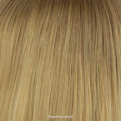 - W tej wersji kolorystycznej jest ciemniejszy odcień odrostu (tu włosy pozostają dziewicze), a na długości zastosowano profesjonalną koloryzację rozjaśniającą. Końcowy efekt to topper naturalny ombre lub sombre.